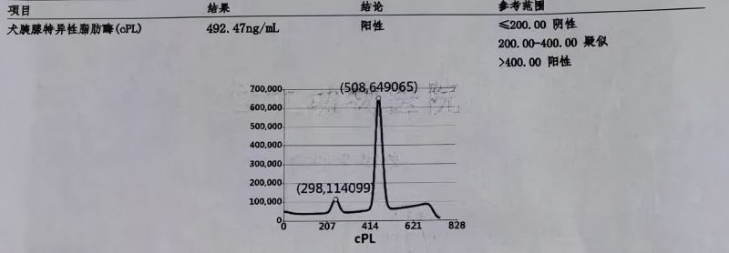 రోగనిర్ధారణ ఫలితం: కుక్కల ప్యాంక్రియాటిక్-నిర్దిష్ట లిపేస్ (cPL)కి అనుకూలం